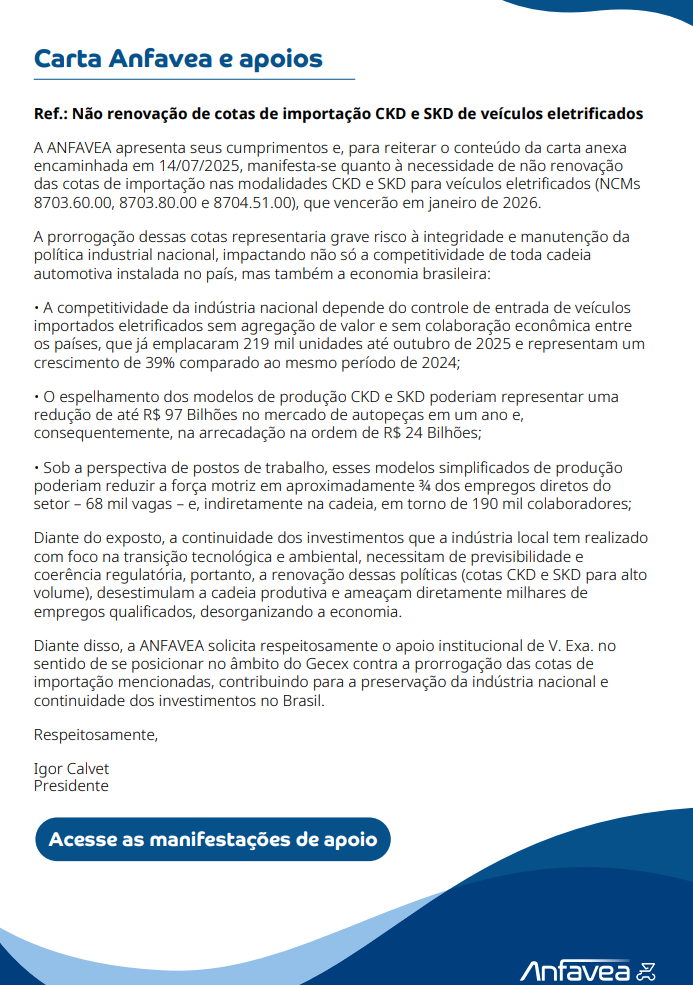 Anfavea mostra seus pontos de vista em manifesto divulgado em caráter oficial. Leia na íntegra: