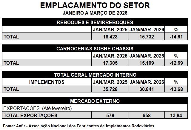 Em março, a indústria de implementos rodoviários comercializou 12.211 unidades, ante 9.870 em fevereiro, um crescimento de 23,7%. É o que apontam os dados divulgados pela Associação Nacional dos Fabricantes de Implementos Rodoviários (ANFIR). O setor de Reboques e Semirreboques registrou 6.390 equipamentos emplacados em março. Em fevereiro, foram comercializados 5.007 implementos rodoviários o que […]
